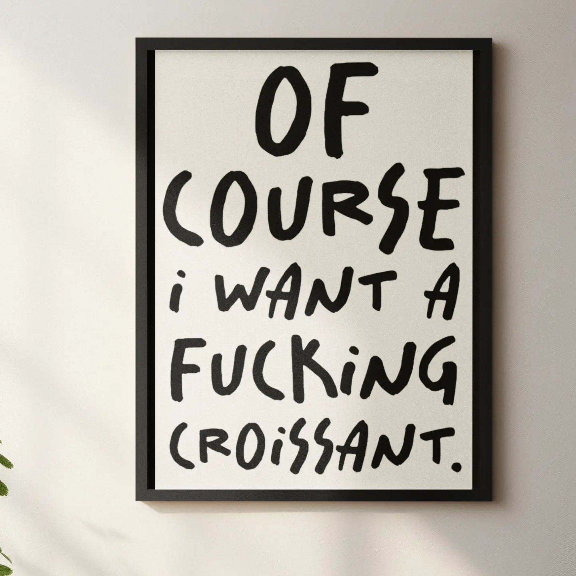 Amusing, eye-catching, and full of attitude, the Croissant Print is the perfect way to add humour and a little spice to your space. This bold black and white typography print features the unapologetic phrase “OF COURSE I WANT A FUCKING CROISSANT”, making it an instant conversation starter for kitchens, dining rooms, coffee stations, or anywhere in need of a cheeky lift.