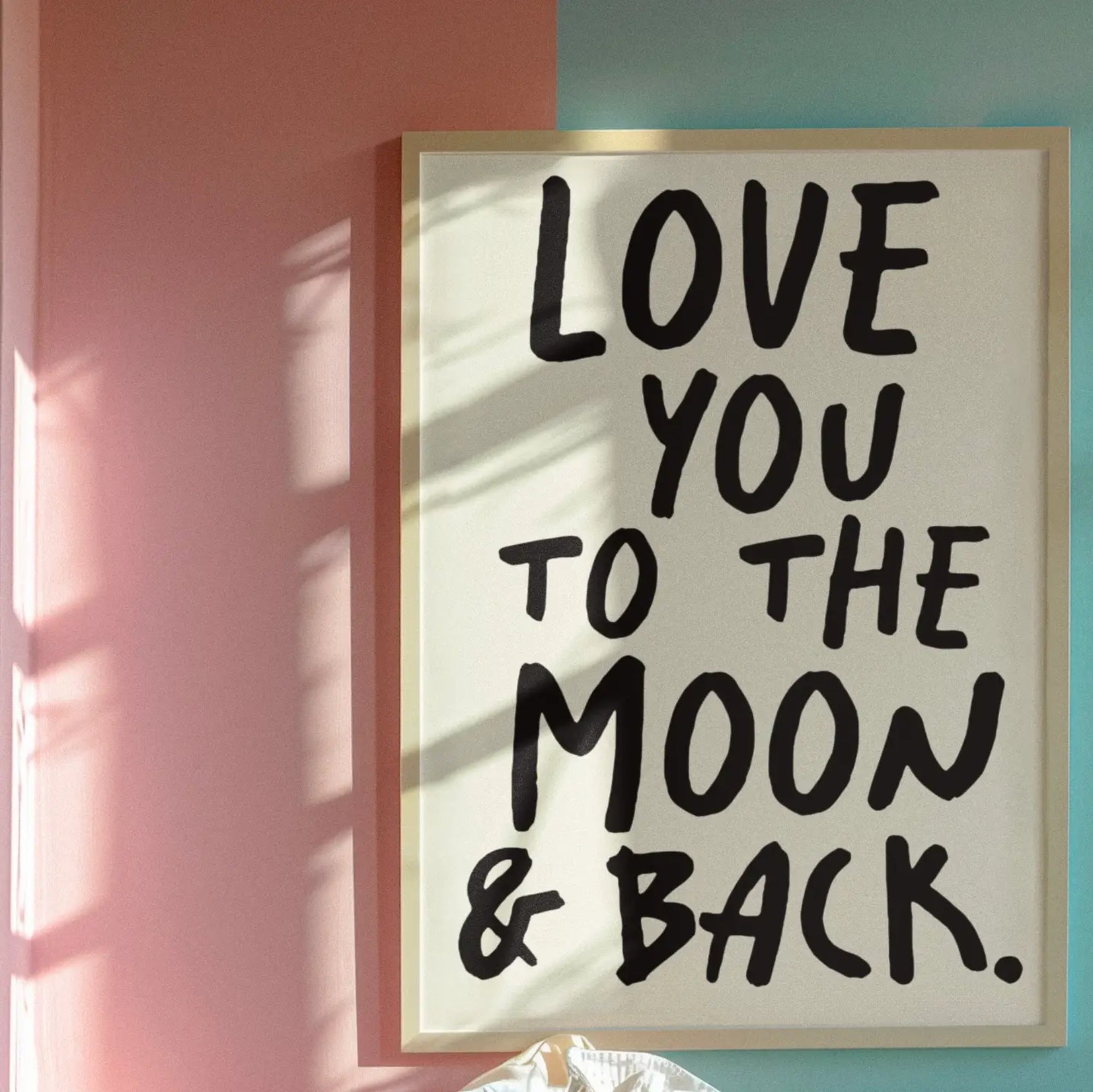 A charming and heartfelt addition to your home, the Moon Print features the much-loved phrase “LOVE YOU TO THE MOON AND BACK” in blue, handwritten-style lettering. This timeless message of love and connection brings warmth, comfort, and personality to any interior.