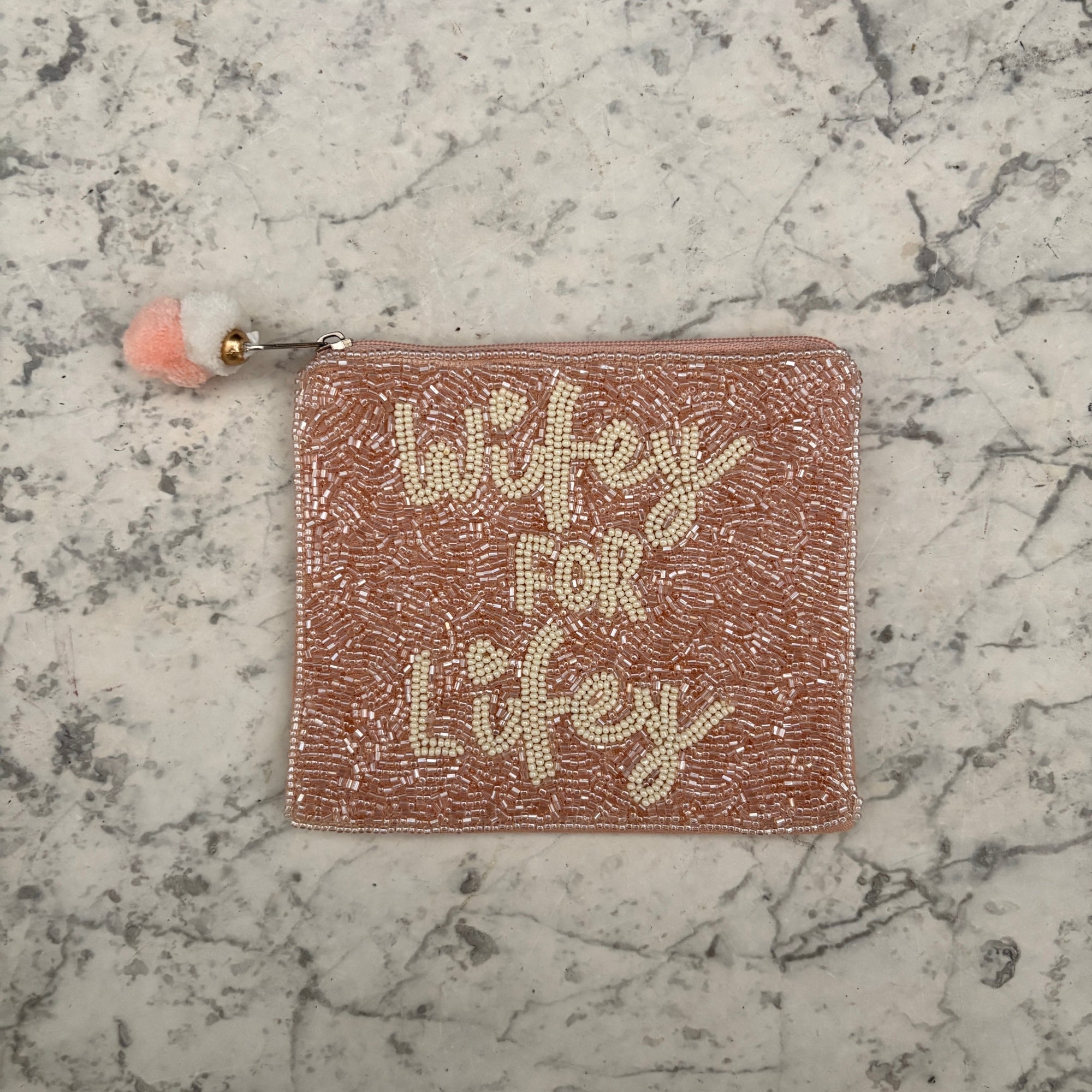 Stylish, charming, and full of sentiment, the Wifey Purse is a playful accessory that beautifully blends heartfelt design with everyday practicality. Hand-beaded with the phrase “Wifey for Lifey” set against a detailed beaded backdrop, this delightful zipped pouch is bursting with love, humour, and personality.