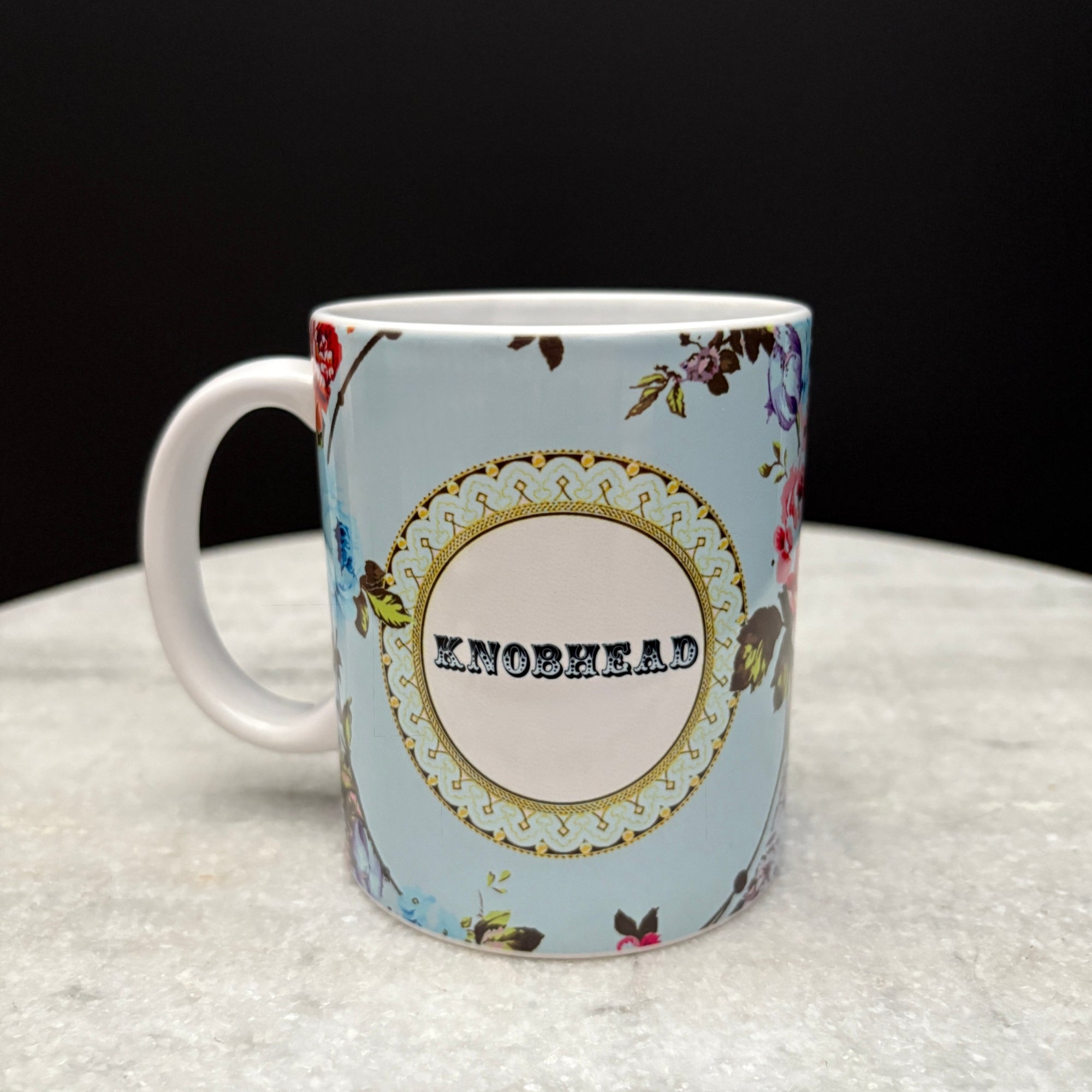 Start your day with a smile (and maybe a raised eyebrow) with this Funny Coffee Cup—the perfect blend of pretty and punchy. Crafted from ceramic, this mug features a delicate floral design, playfully offset by the bold black word “KNOBHEAD” at its centre.