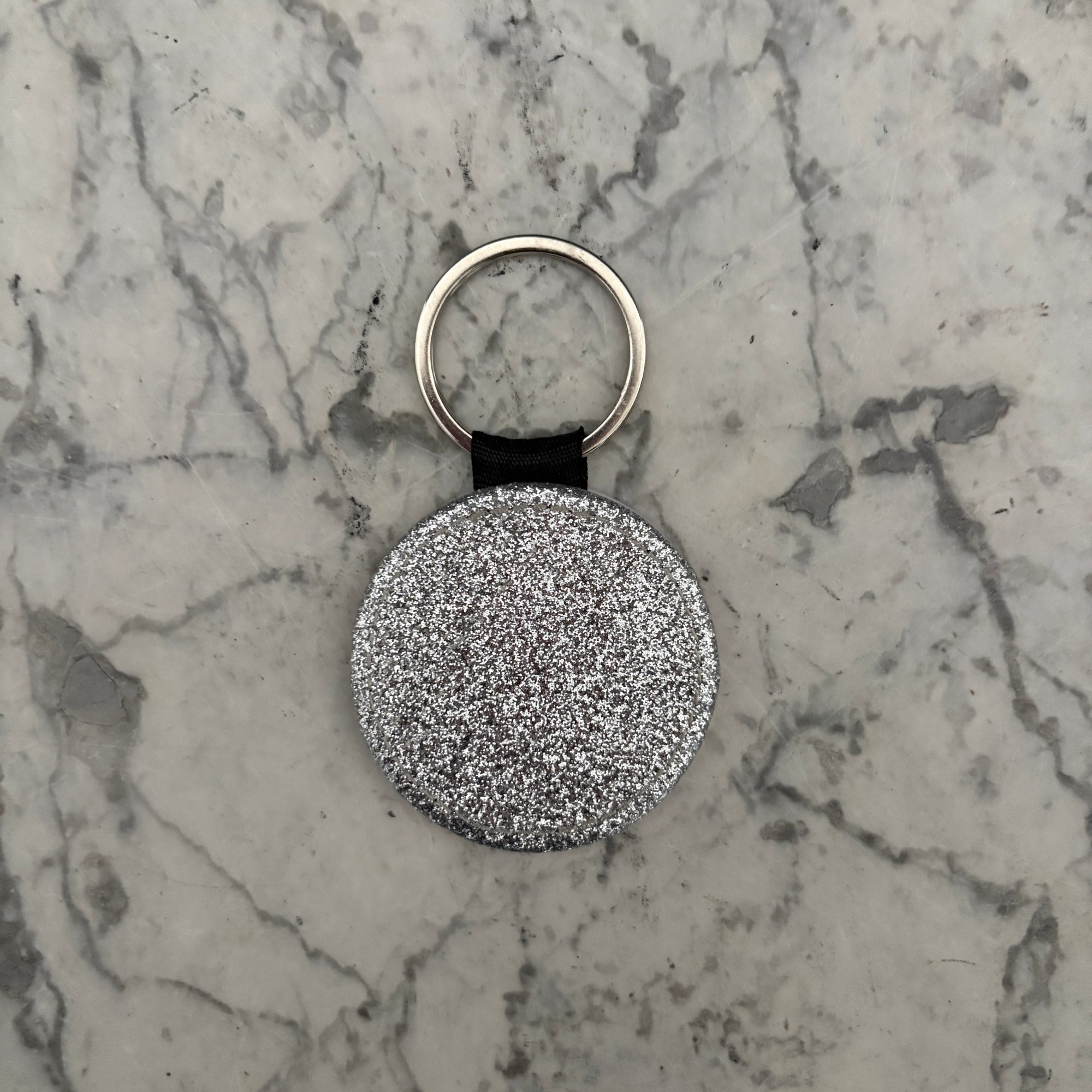 The reverse side is finished in shimmering silver glitter, adding a dazzling touch of glamour to your keys, bag, or backpack. Both fun and fabulous, this keyring brings confidence and sparkle wherever it goes.