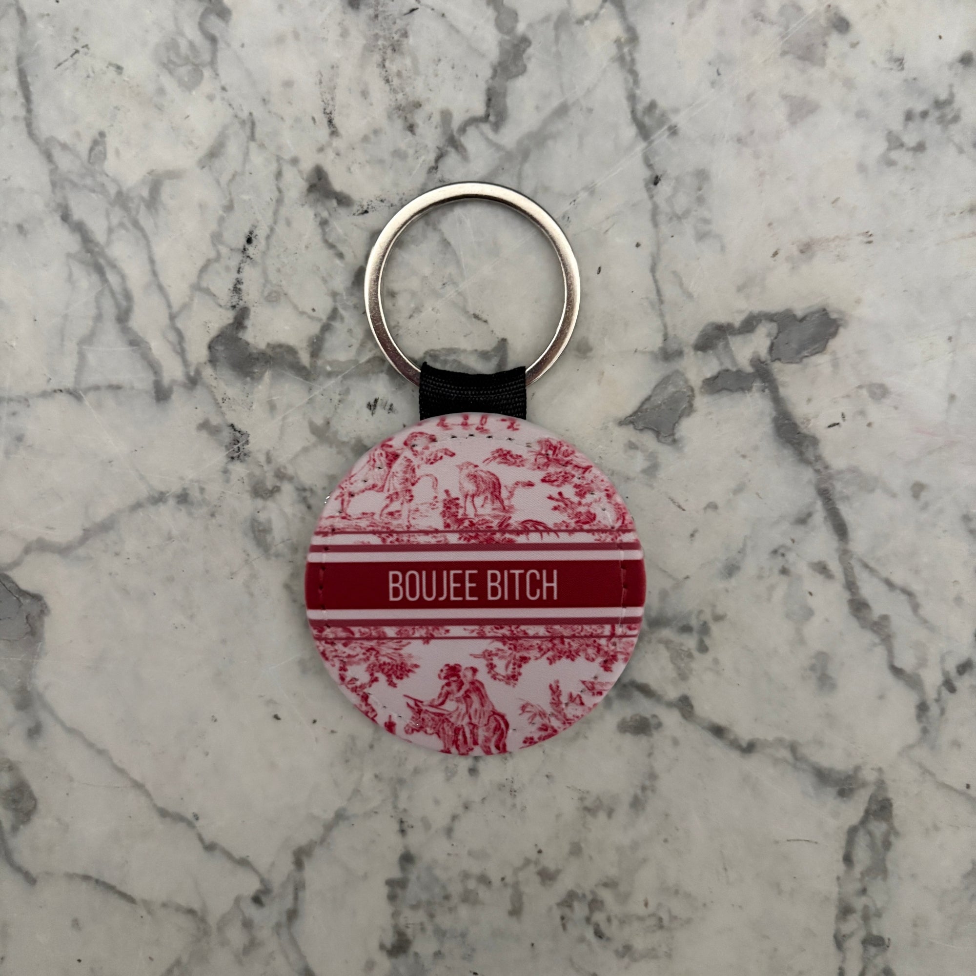 Bold, cheeky, and unapologetically sassy, the Red Keyring is the ultimate statement accessory. Featuring a playful twist on a classic toile design, this funny keyring proudly displays the words “Boujee Bitch” in bold lettering at the centre — creating an accessory that amuses, empowers, and sparks conversation. Designed for those who love their humour naughty and their style fearless, this keychain is perfect for adding personality to your everyday essentials.