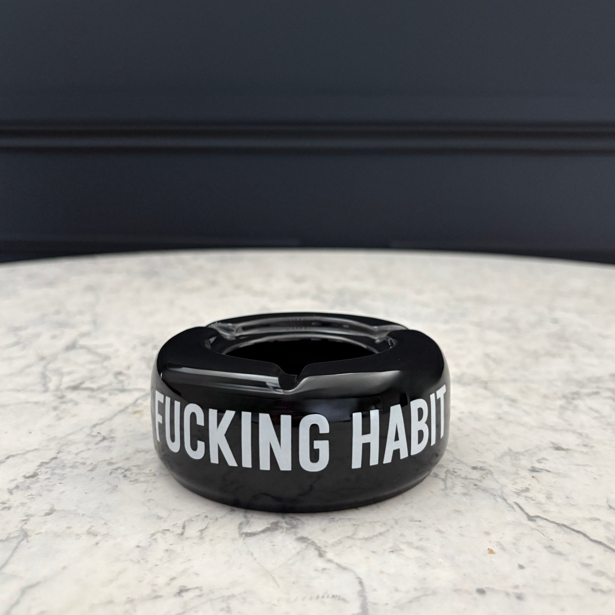 Bold, cheeky, and designed to stand out, this Funny Ashtray is a playful take on a practical accessory. Crafted from durable black ceramic, this ashtray features the humorous phrase “FUCKING HABIT” in crisp white lettering, making it as eye-catching as it is amusing.