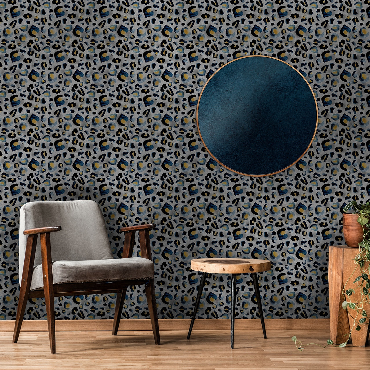 Description of Blue Leopard Print Wallpaper - Avalana Design