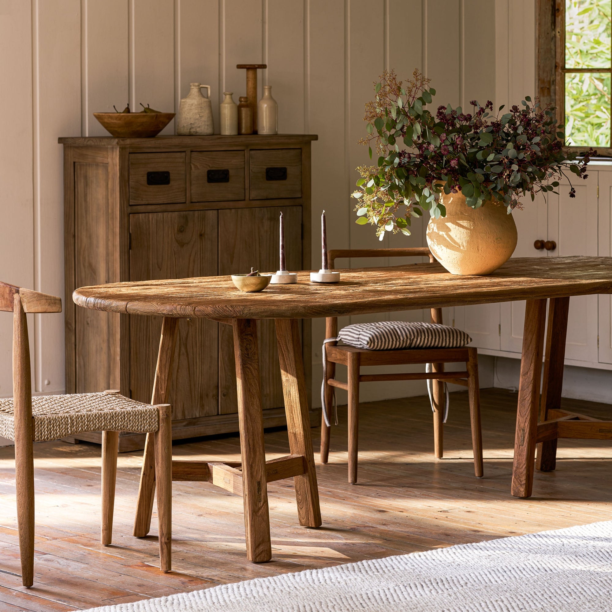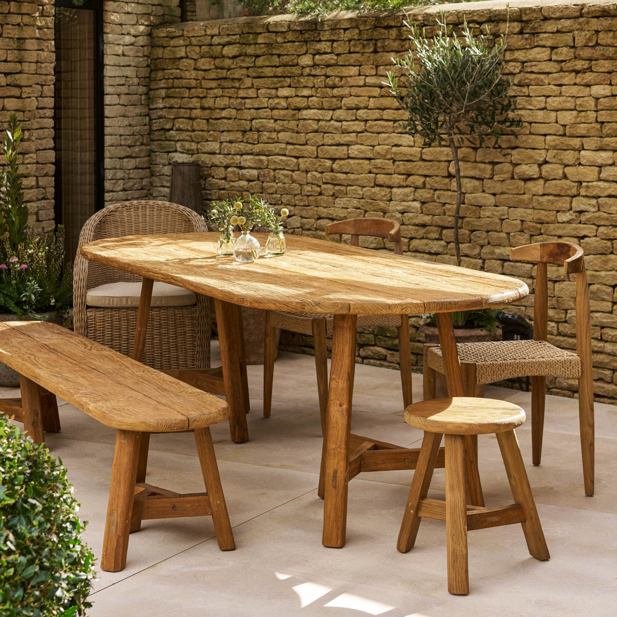 Equally at home on a sunny patio or in a stylish dining room, our Indoor Outdoor Dining Table brings timeless beauty, sustainability, and practicality together in one stunning design. Crafted by hand in Indonesia from reclaimed teak wood, this generous oval dining table is a piece to cherish—designed for everyday use, seasonal entertaining, and long summer lunches with friends and family.