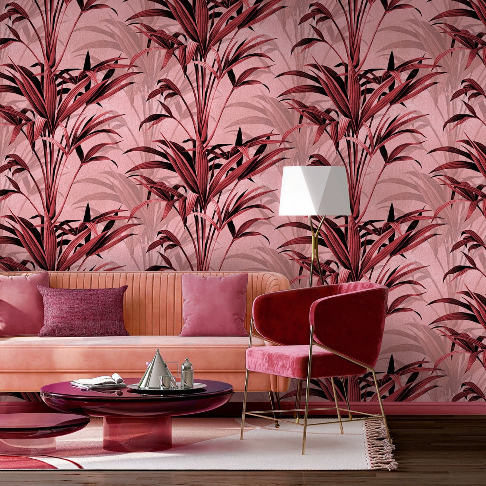 Designed with bold tropical foliage this Avalana wallpaper creates a fun atmosphere in your abode. Style this striking Pink Grass Wallpaper in your hallways to create impact as soon as you walk into the home, alternatively it looks fabulous in living rooms, dining space, bedrooms or office ensuring a unique interior style.