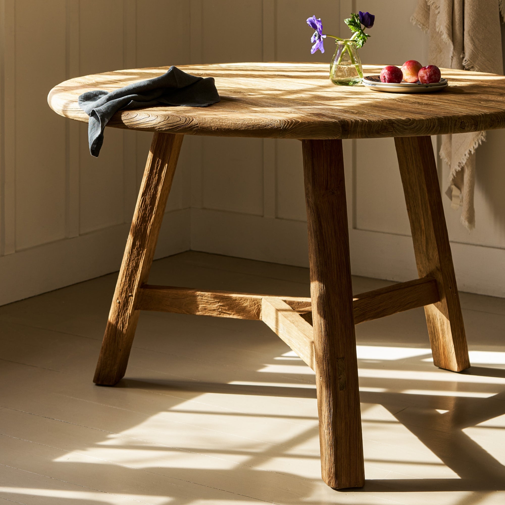 Renowned for its durability, reclaimed teak is even stronger than new teak, making this an heirloom-quality piece built to last for generations. Its rustic, organically textured finish adds warmth and authenticity to your space, while its round design creates a relaxed, inclusive setting—ideal for intimate gatherings or family meals.